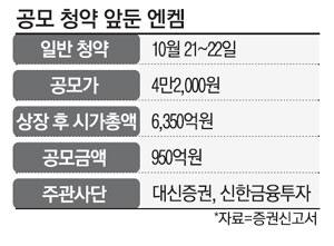 유통시장에서 2차전지 관련 종목에 대한 뜨거운 관심이 흥행의 주요 배경으로 꼽힌다. 이달 7일 상장한 2차전지 소재 열처리 장비 업체 원준 역시 지난 5거래일 동안 80% 넘는 상승률을 거둔 바 있다. 엔켐이 공모가를 대폭 높이면서 공모금액은 950억원, 상장 직후 시가총액은 6350억원으로 확정됐다. 엔켐은 21일부터 이틀 동안 일반 개인 투자자를 대상으로 청약에 나선다. 청약에 참여하려면 대신증권이나 신한금융투자 중 최소 한 곳의 계좌를 보유하고 있어야 한다. 두 회사에 복수로 청약하는 것은 금지된다. 엔켐은 일반 청약을 마친 뒤 다음달 코스닥시장에 상장할 예정이다. 오정강 엔켐 대표는 “시장 반응이 뜨거웠던 데 감사하다”며 “더 열심히 회사를 키워가야겠다는 막중한 책임감도 함께 느끼고 있다”고 소감을 밝혔다.