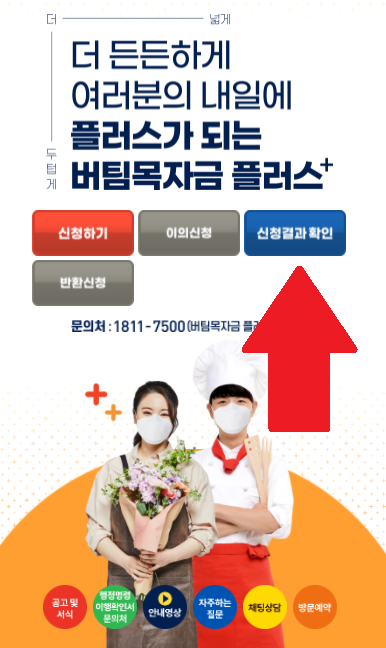 소상공인 버팀목 자금 플러스 신청결과 조회