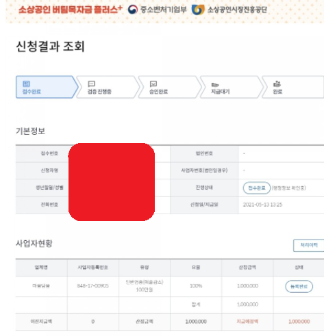 [참고정보] ‘진행상태’가 ‘신청중’이신 분들이 많이 있습니다. 한때 뉴스에서 화제가 되었었는데, 이 분들은 신청 과정 중에 마지막 ‘접수’버튼을 누리지 않은 분들입니다. 소상공인 중에서 이런 분이 4만분이 되어서, 한때 민원이 폭발했죠. 다행히 중소벤처기업부에서 ‘접수’ 버튼을 누리지 않은 분들에게 개별 연락을 했습니다.연락도 못받으시고, 진행상태가 ‘신청중’이신 꼭 확인해 보시길 바랍니다.